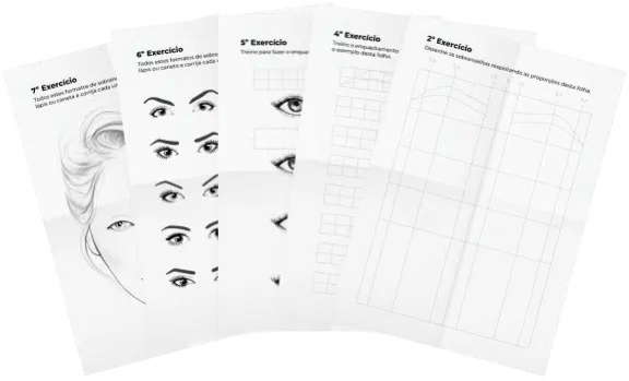 Ao adquirir o e-book "Mudando de Vida com Sobrancelhas", você receberá de brinde um Caderno de Treino com mais de 50 folhas de exercícios práticos para aprimorar suas habilidades como designer de sobrancelhas. Ele será o complemento perfeito para colocar em prática todo o conhecimento adquirido no e-book.